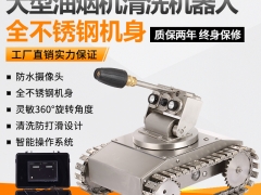 详细信息 高利洁机器人,304全不锈钢机身,耐腐蚀,自重30斤,底盘稳如泰山,5公分高底盘超强越野性,灵敏360°旋转角度防水,前后双置高清摄像头LED高光灯,超强度连接线300公斤拉力,前后驱动力300公斤,摇摆扭力80公斤,大角度摇摆,清洗无死角,左右160°.上下90°.操控台内置80G固态硬盘,清洗全程回放,超大显示器,操作随心所欲,双喷清洗,效率提高50%以上。大型油烟机清洗横管清洗好帮手。